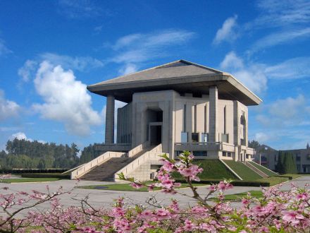 | 周恩来纪念馆位于江苏省淮安市淮安区桃花垠,1986年3月由中宣部批准兴建,1992年1月6日对外开放,邓小平题写馆名,为全国爱国主义教育示范基地。 1998年为纪念周恩来诞辰100周年,增建了仿北京中南海西花厅和周恩来铜像广场。2008年为纪念周恩来诞辰110周年,在周恩来纪念馆附馆基础上又改扩建了周恩来生平业绩陈列馆,并新建了西花苑碑园。 整个馆区由一组纪念性建筑群、一个纪念岛、三个人工湖和环湖四周的绿地组成。馆区总面积40万平方米,其中70%为水面。在纪念馆南北800米长的中轴线上,依次建有瞻台、主馆、陈列馆、周恩来铜像广场和仿中南海西花厅等纪念性建筑。 周恩来纪念馆主馆高26米,为外四方内八角形建筑。主馆分为三层,分别为影视厅、瞻仰纪念大厅和观景平台。改扩建的周恩来生平业绩陈列馆,内设四个展厅,按年代和专题分别陈列展出了周恩来在各个重大历史时期的图片和相关的文献、文物。 由陈列馆向北,是周恩来铜像广场。铜像连基座高7.6米。由著名雕塑家、中央美术学院教授李守仁创作,取材于周恩来总理五、六十年代和人民群众在一起交谈时习惯性站姿。 在周恩来铜像广场北端是仿北京中南海西花厅,分上下两层。上层按北京中南海西花厅格局等比例设计和建造,并按周恩来任国务院总理期间工作和生活时的场景复原陈列,下层为临时展厅和办公用房。 |